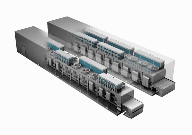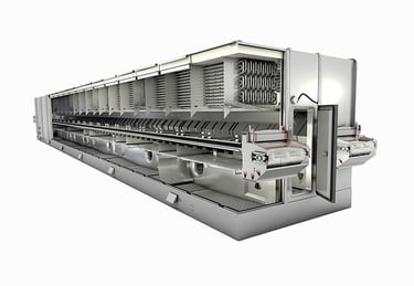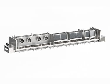 Impingement and tunnel freezing systems are designed for high-speed processing of food products, delivering rapid heat transfer and consistent results. By combining high-velocity airflow with optimized conveyor design, these systems ensure uniform freezing across the entire product surface.