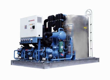 Ice systems are designed to produce different types of ice for various industrial applications, including tube ice, block ice, flake ice, plate ice, and slurry ice, with options for both freshwater and seawater.
