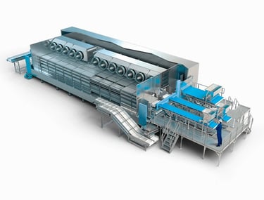 Fluidized bed freezing systems deliver high-capacity, uniform IQF freezing for small particulate products using high-velocity airflow, ensuring efficiency, product separation, and consistent quality in a compact design.