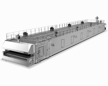 Tunnel freezing systems are designed for continuous processing of large volumes of food products, ensuring consistent quality and high efficiency. They are widely used for seafood, meat, poultry, bakery, and prepared foods.