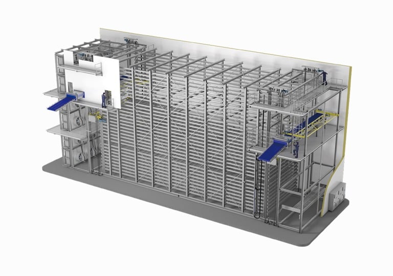 The multi-tier system is designed for high-density freezing of packaged products, allowing flexible configuration based on required capacity and product size. Shelf dimensions and storage layouts can be customized to optimize space utilization and operational efficiency.